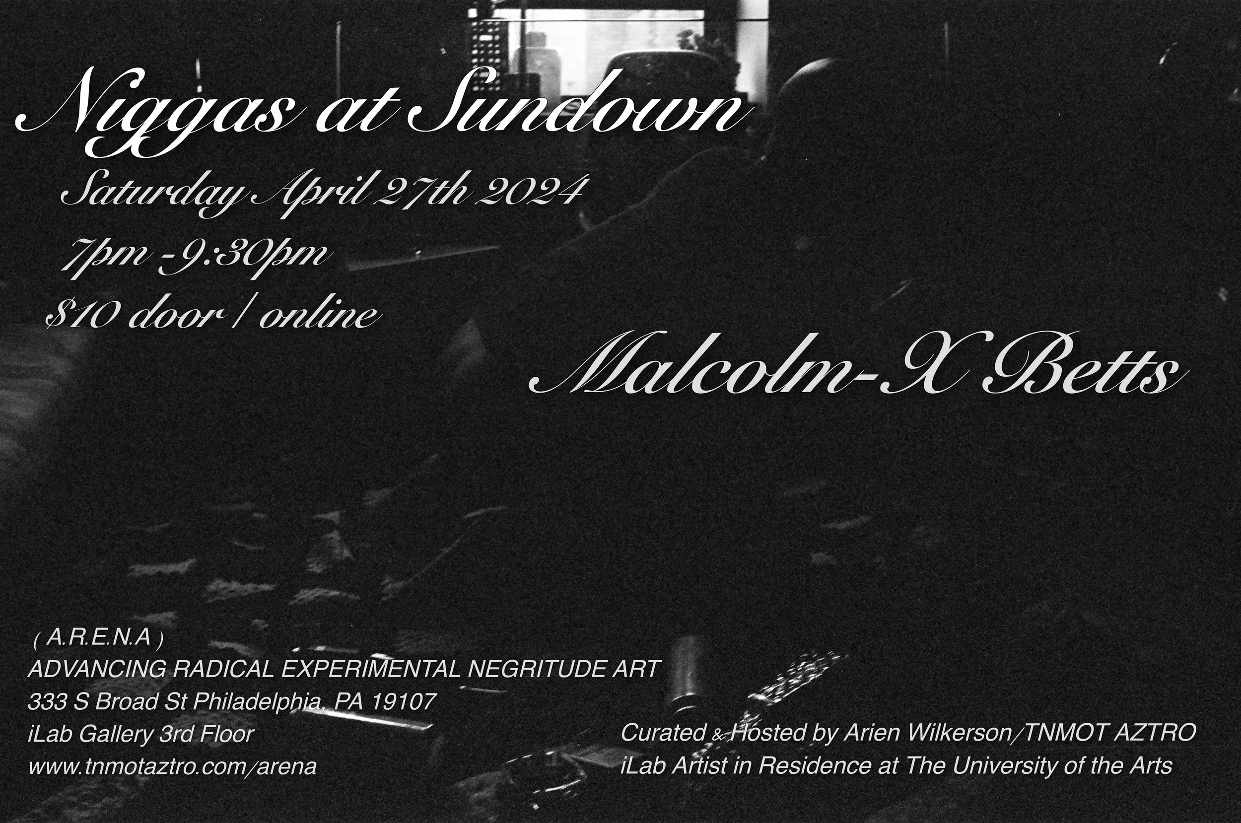 Step into the electrifying world of Malcolm X Betts as he unleashes his groundbreaking performance series, "Niggas at Sundown." As a multifaceted artist—choreographer, photographer, painter, and dancer—Betts invites us on a mesmerizing journey through themes of displacement, identity, memory, institutional critique, and dance itself. With each riveting performance, "Niggas at Sundown" challenges us to confront the complexities of the black experience and the haunting legacy of sundown towns in the United States. Through powerful movement and thought-provoking imagery, Betts dares us to reimagine the black body as a sanctuary of belonging in a world rife with prejudice and violence. With every step, every gesture, he unveils the stark reality of being visibly Black in a society that too often seeks to erase or marginalize our existence. Prepare to be captivated, inspired, and moved as Malcolm X Betts fearlessly pushes the boundaries of art and activism. "Niggas at Sundown" is more than just a performance—it's a call to action, a celebration of resilience, and a testament to the enduring power of black creativity. Join us as we embark on this unforgettable journey toward truth, justice, and liberation.
